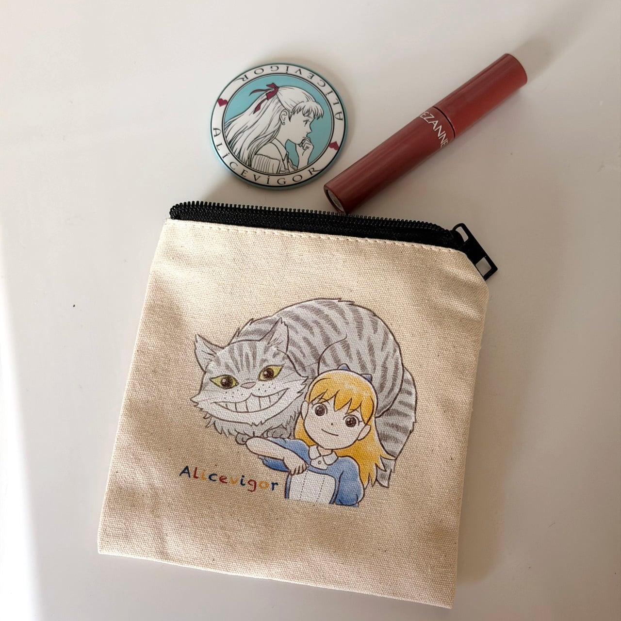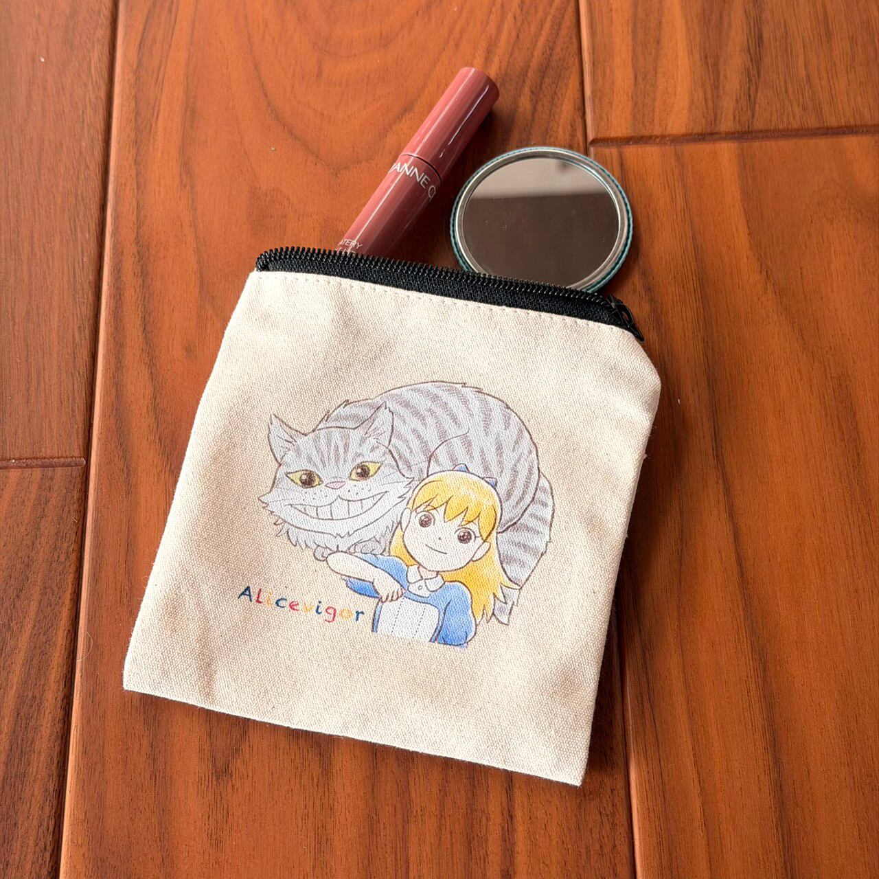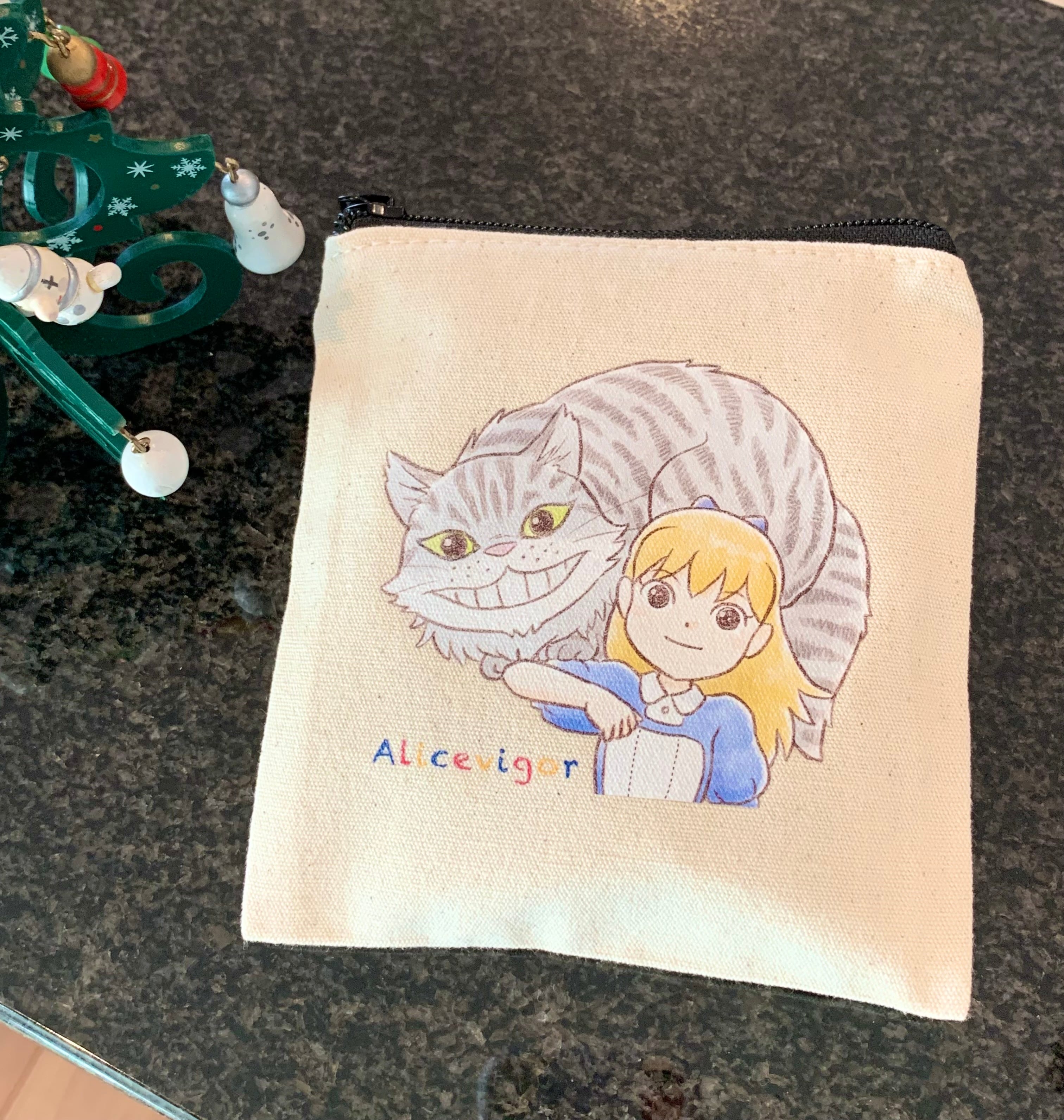 アリスとチェシャ猫のミニスクエアポーチ。